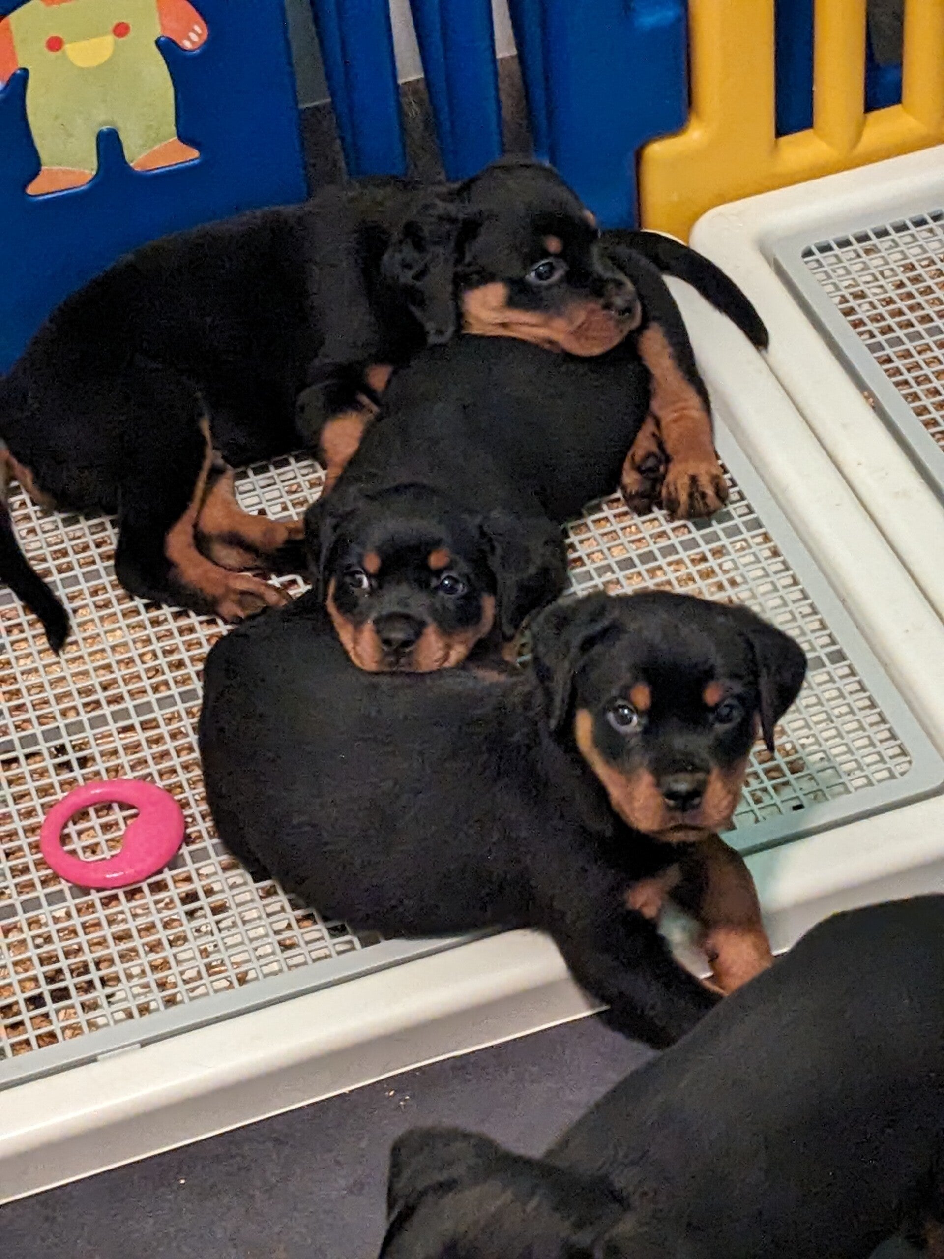 At Von Hastings Rottweilers, we take immense pride in breeding and raising exemplary German Rottweilers. Our Rottweilers come from champion bloodline lineage directly from Germany, ensuring not only their superior physical traits but also their exceptional temperament.